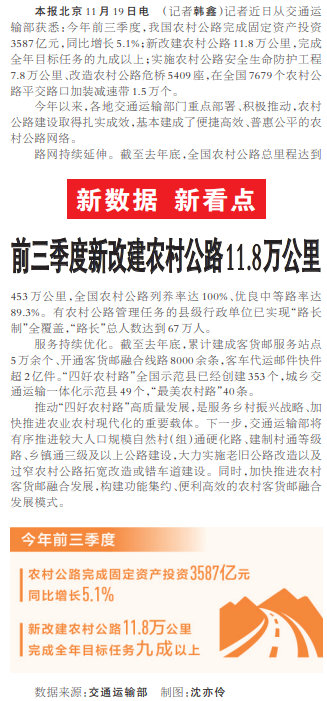 前三季度新改建农村公路11.8万公里