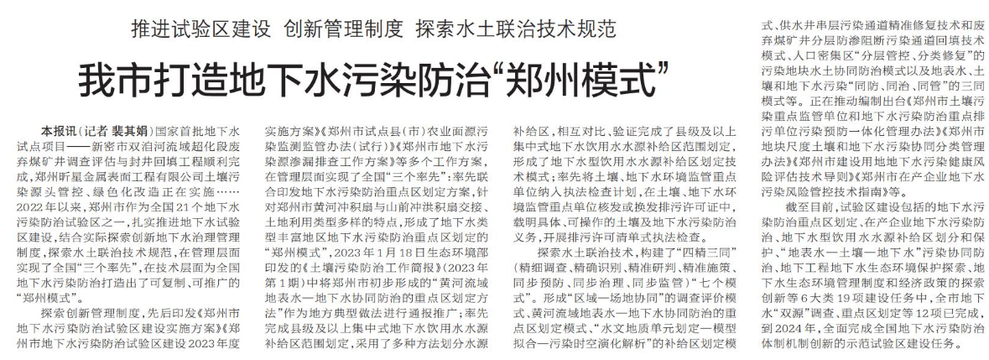 我市打造地下水污染防治“郑州模式”