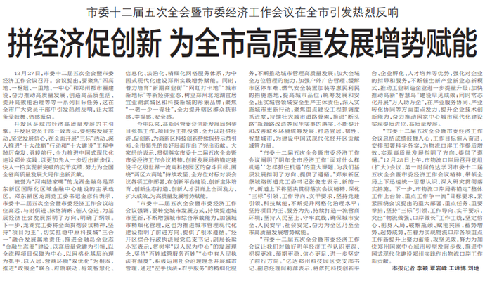 市委十二届五次全会暨市委经济工作会议在全市引发热烈反响
