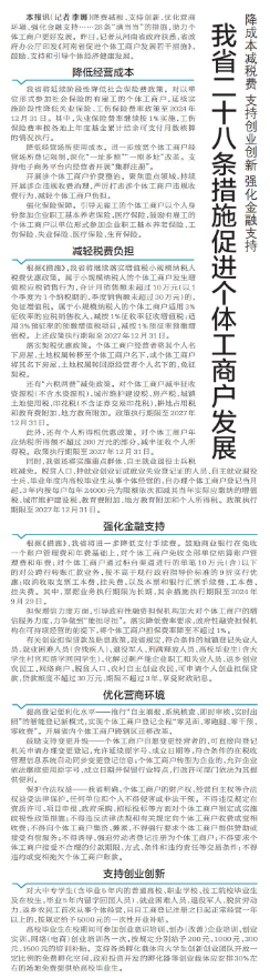 我省二十八条措施促进个体工商户发展
