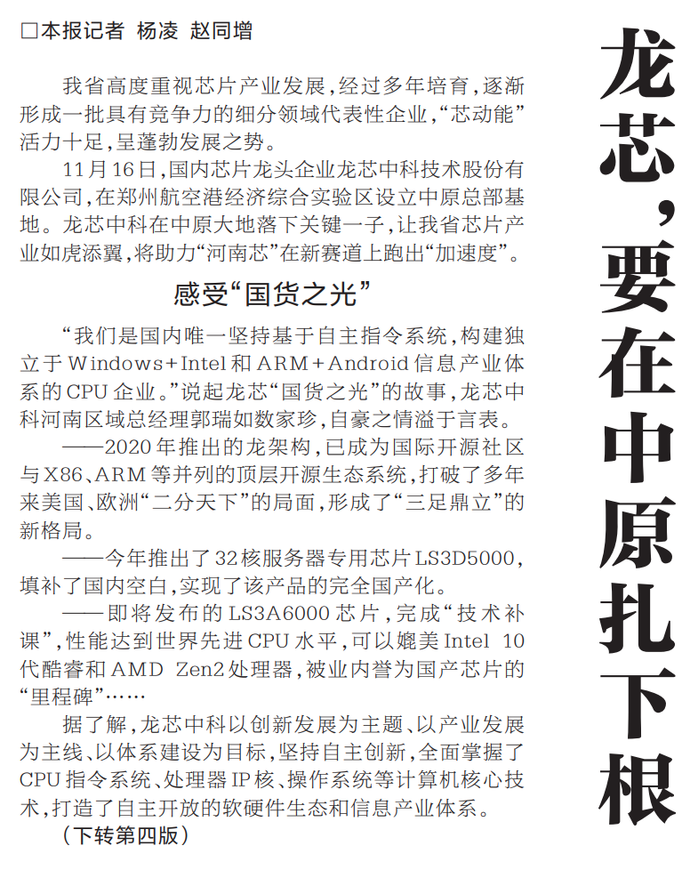 龙芯,要在中原扎下根