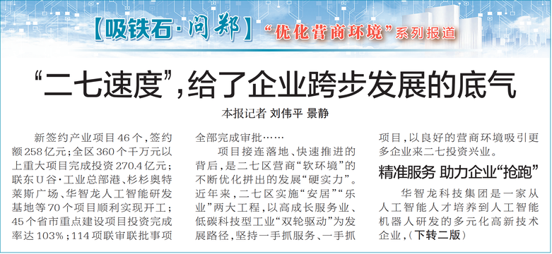 【吸铁石·问郑】 “优化营商环境”系列报道