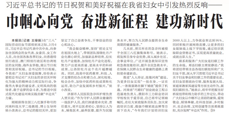 习近平总书记的节日祝贺和美好祝福在我省妇女中引发热烈反响——