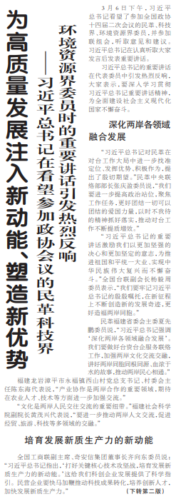 ——习近平总书记在看望参加政协会议的民革科技界环境资源界委员时的重要讲话引发热烈反响