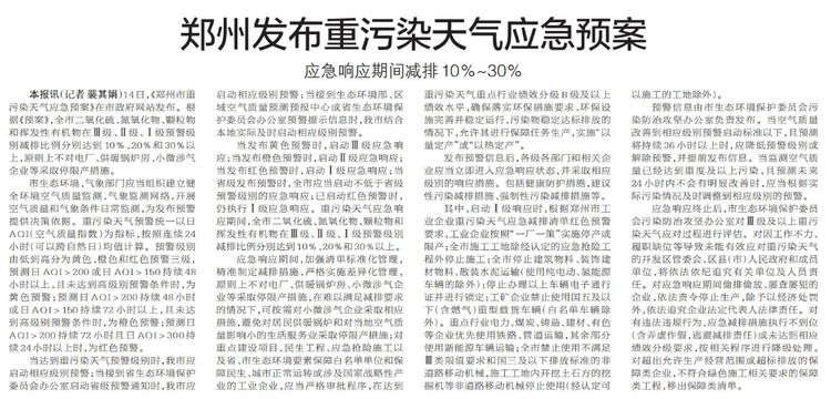 郑州发布重污染天气应急预案