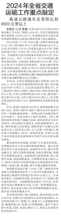 2024年全省交通运输工作重点敲定