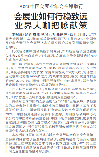 12月15日,以“营造大会展新生态,赋能高质量新格局”为主题的2023中国会展业年会暨郑州会展经济高质量发展论坛在郑州国际会展中心举行。(今日《郑州日报》2版)