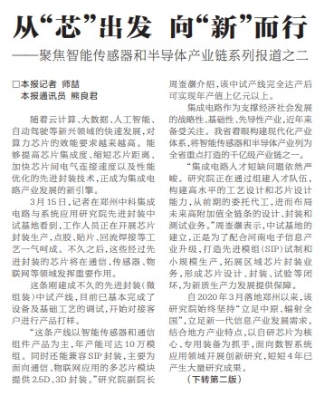 随着云计算、大数据、人工智能、自动驾驶等新兴领域的快速发展,对算力芯片的效能要求越来越高。能够提高芯片集成度、缩短芯片距离、加快芯片间电气连接速度以及性能优化的先进封装技术,正成为集成电路产业发展的新引擎。(今日《河南日报》1版、2版)