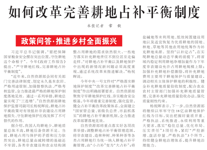 如何改革完善耕地占补平衡制度