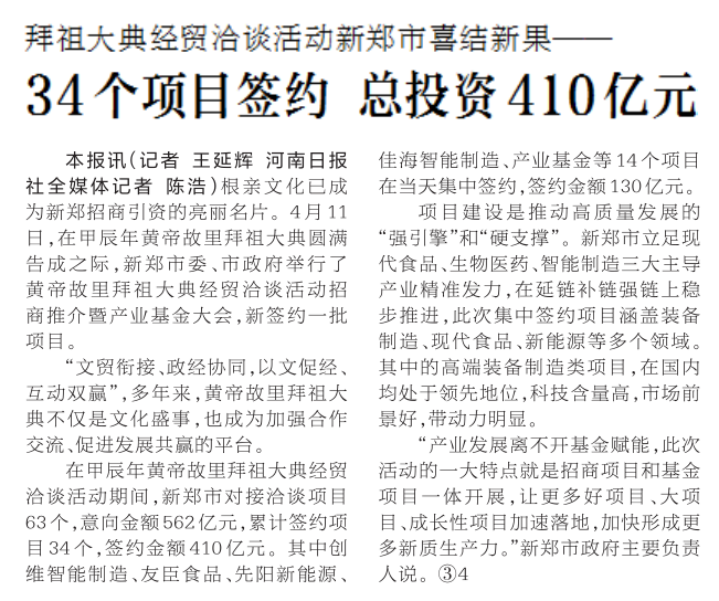拜祖大典经贸洽谈活动新郑市喜结新果——