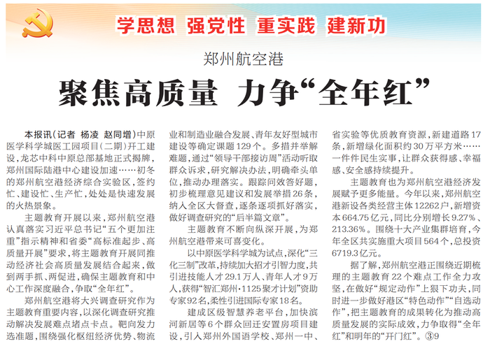 郑州航空港聚焦高质量力争“全年红”