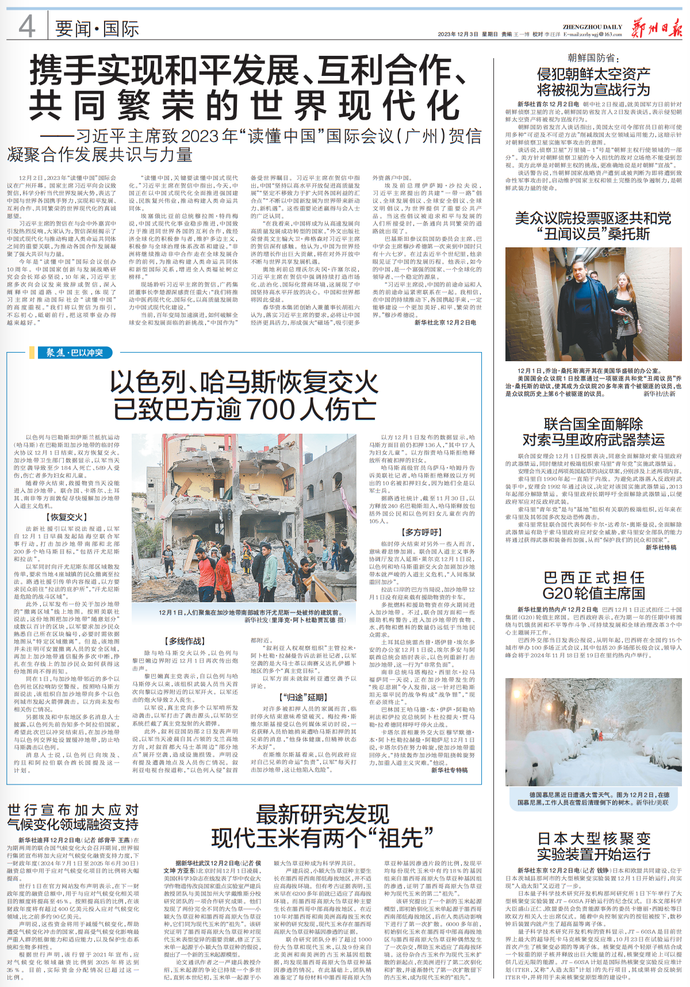 12月2日,国家主席习近平向2023年“读懂中国”国际会议(广州)致贺信。