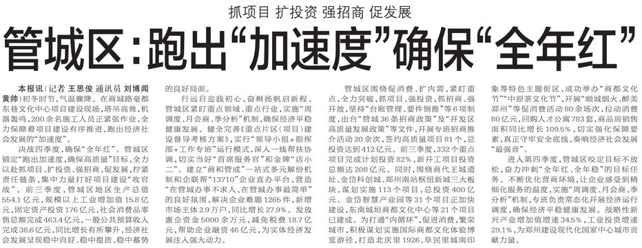 管城区:跑出“加速度”确保“全年红”