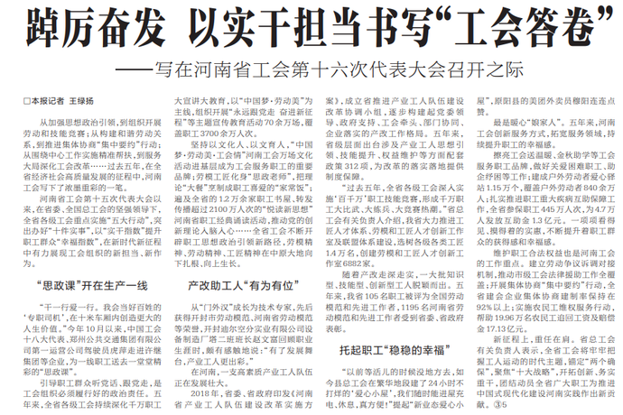 ——写在河南省工会第十六次代表大会召开之际