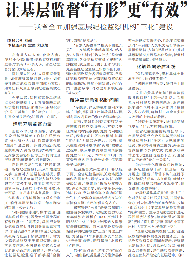 我省是人口大省、农业大省。2524个乡镇(街道)纪检监察机构的监督对象有130余万人,占全省监督对象的六成左右。