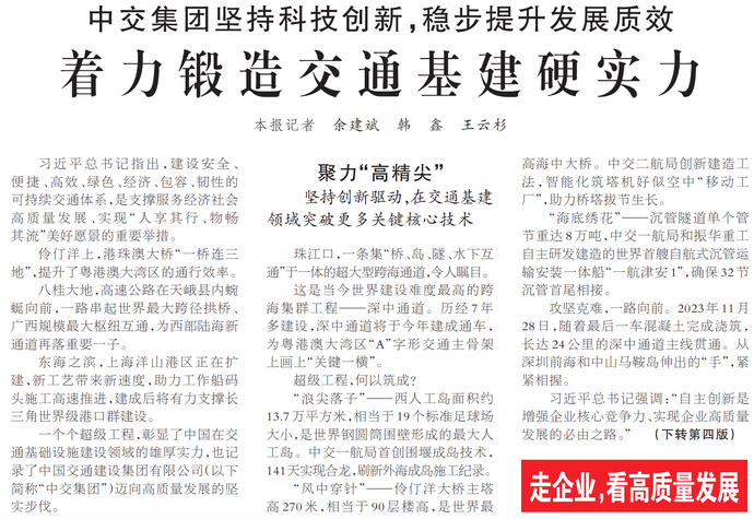 中交集团坚持科技创新,稳步提升发展质效