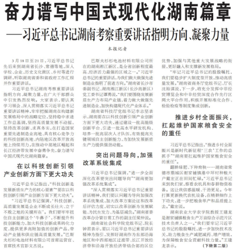 ——习近平总书记湖南考察重要讲话指明方向、凝聚力量