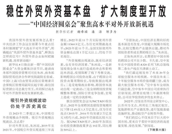 ——“中国经济圆桌会”聚焦高水平对外开放新机遇