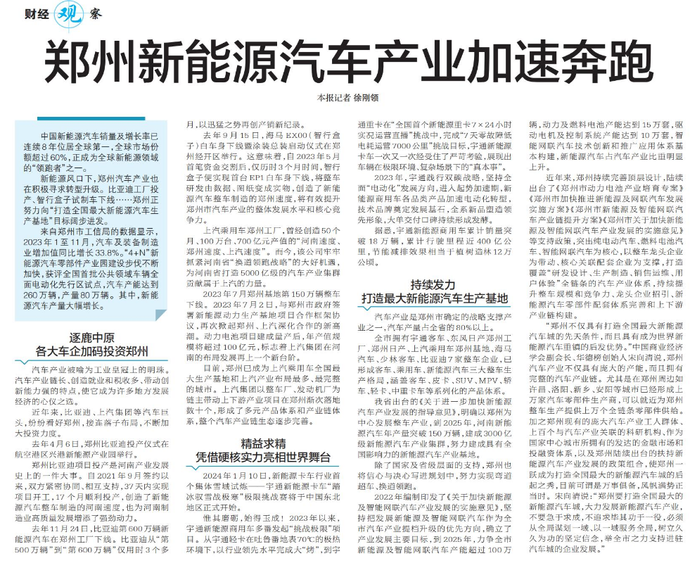 郑州新能源汽车产业加速奔跑