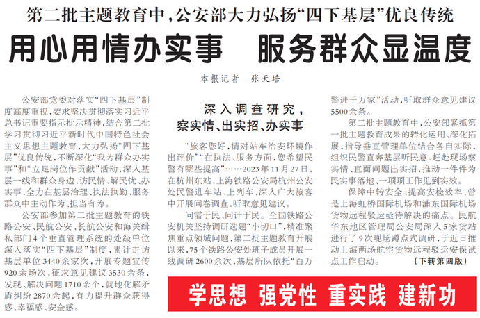 第二批主题教育中,公安部大力弘扬“四下基层”优良传统