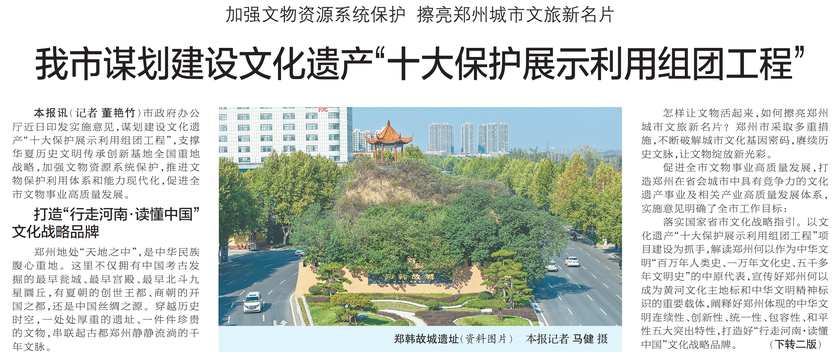加强文物资源系统保护 擦亮郑州城市文旅新名片