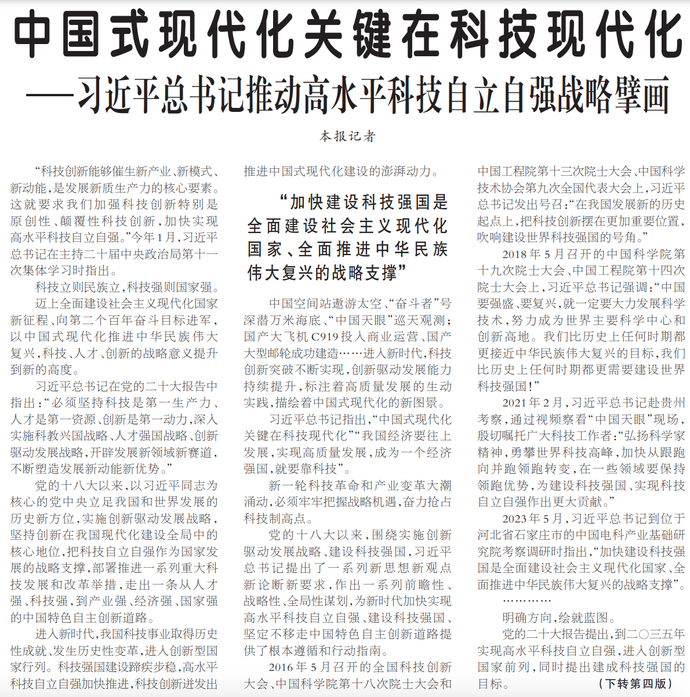 中国式现代化关键在科技现代化