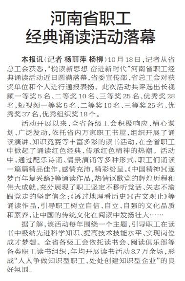 河南省职工经典诵读活动落幕