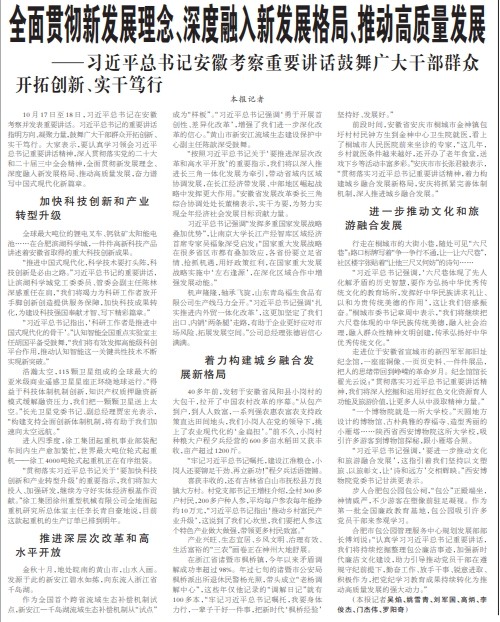 ——习近平总书记安徽考察重要讲话鼓舞广大干部群众开拓创新、实干笃行