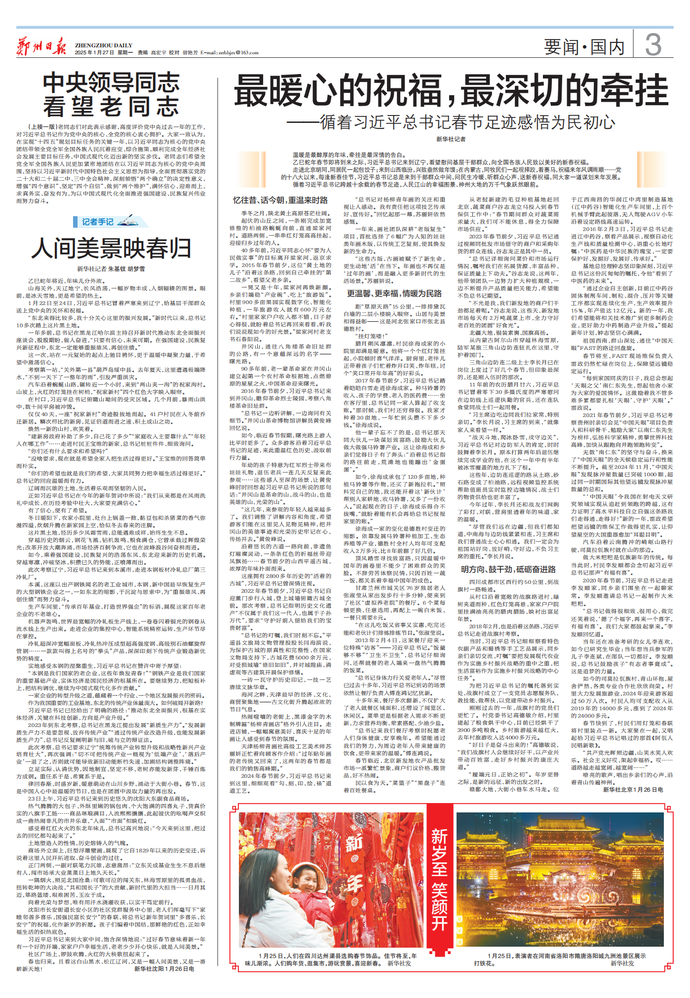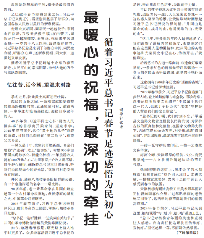 乙巳蛇年春节即将到来之际,习近平总书记来到辽宁,看望慰问基层干部群众,向全国各族人民致以美好的新春祝福。(今日《人民日报》1版、4版)