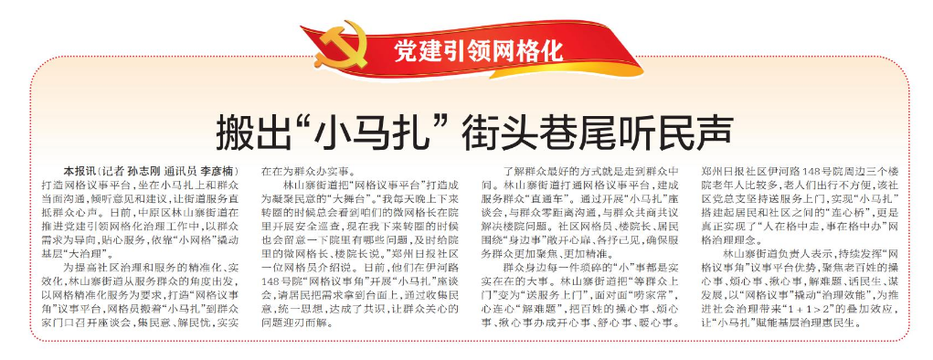 打造网格议事平台,坐在小马扎上和群众当面沟通,倾听意见和建议,让街道服务直抵群众心声。日前,中原区林山寨街道在推进党建引领网格化治理工作中,以群众需求为导向,贴心服务,依靠“小网格”撬动基层“大治理”。(今日《郑州日报》7版)