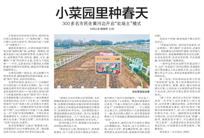 在欲说还休的丝丝谷雨中,郑州的春在街头巷尾装点出一片“绿肥红瘦”。当此万物生长的大好时节,郑州流行起了这样一件“时髦事儿”——(今日《郑州日报》5版)