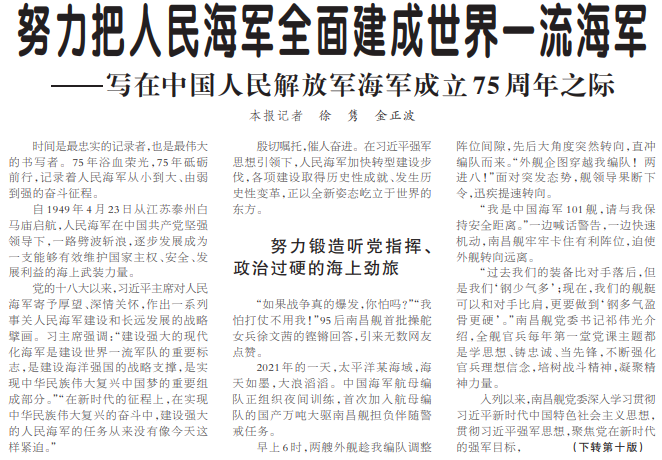——写在中国人民解放军海军成立75周年之际