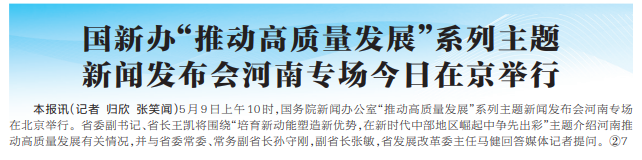 国新办“推动高质量发展”系列主题新闻发布会河南专场今日在京举行