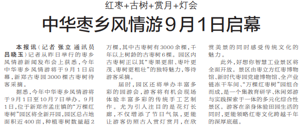 中华枣乡风情游9月1日启幕