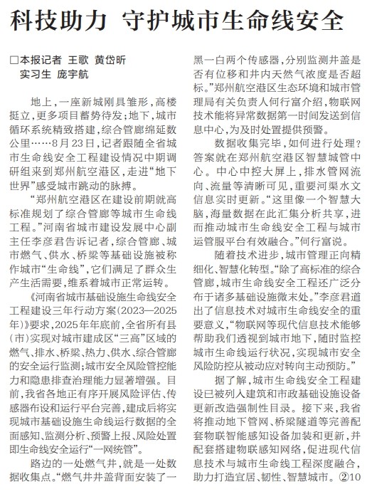 地上,一座新城刚具雏形,高楼挺立,更多项目蓄势待发;地下,城市循环系统精致搭建,综合管廊绵延数公里……8月23日,记者跟随全省城市生命线安全工程建设情况中期调研组来到郑州航空港区,走进“地下世界”感受城市跳动的脉搏。(今日《河南日报》4版)