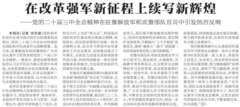 ——党的二十届三中全会精神在驻豫解放军和武警部队官兵中引发热烈反响
