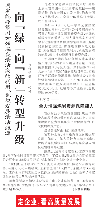 国家能源集团加强煤炭清洁高效利用、积极发展清洁能源