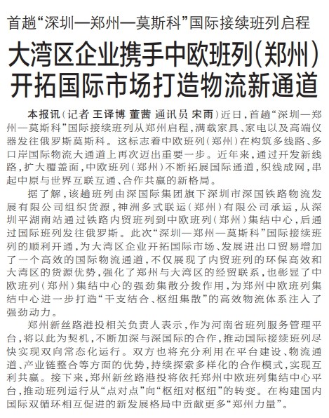 大湾区企业携手中欧班列(郑州)开拓国际市场打造物流新通道