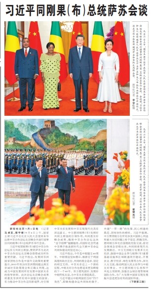 9月6日上午,国家主席习近平在北京人民大会堂同来华出席中非合作论坛北京峰会并进行国事访问的刚果(布)总统萨苏举行会谈。今日《人民日报》1版、3版)