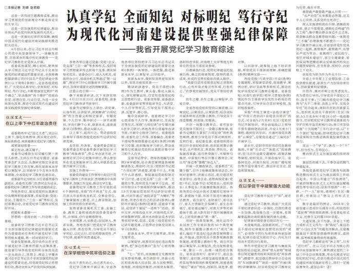 认真学纪 全面知纪 对标明纪 笃行守纪 为现代化河南建设提供坚强纪律保障
