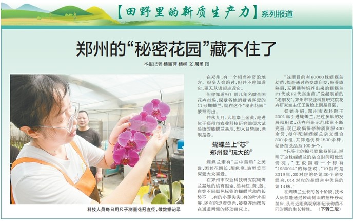 仲秋九月,大地染上金黄,走进位于郑州市农业科技研究院须水试验场的蝴蝶兰基地,却入目皆绿、满眼是春。(今日《郑州日报》1版、2版)