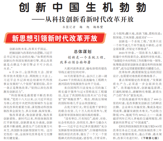 把握创新与改革的内在逻辑,习近平总书记有过生动的比喻:“如果把科技创新比作我国发展的新引擎,那么改革就是点燃这个新引擎必不可少的点火系。”(今日《人民日报》1版、7版)