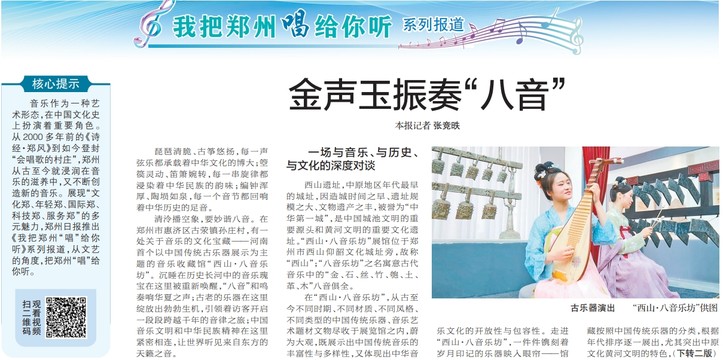 音乐作为一种艺术形态,在中国文化史上扮演着重要角色。从2000多年前的《诗经·郑风》到如今登封“会唱歌的村庄”,郑州从古至今就浸润在音乐的滋养中,又不断创造新的音乐。展现“文化郑、年轻郑、国际郑、科技郑、服务郑”的多元魅力,郑州日报推出《我把郑州“唱”给你听》系列报道,从文艺的角度,把郑州“唱”给你听。