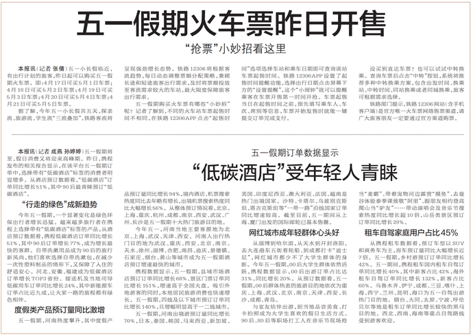 五一假期火车票昨日开售