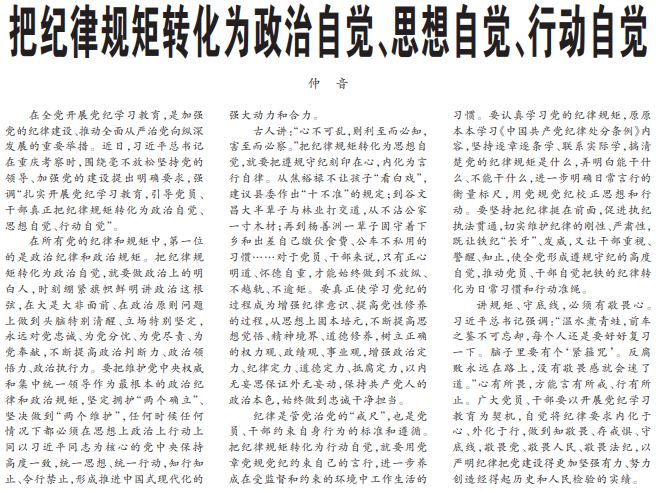 把纪律规矩转化为政治自觉、思想自觉、行动自觉
