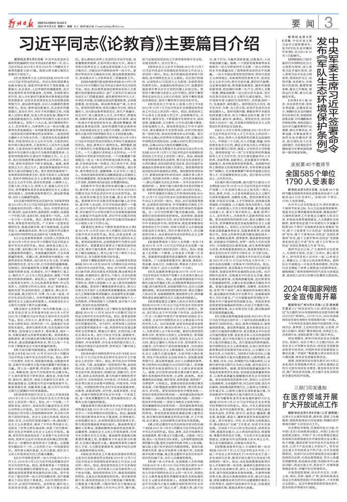 这部专题文集,收入习近平同志关于教育的重要文稿47篇,其中部分文稿是首次公开发表。(今日《人民日报》1版、2版)