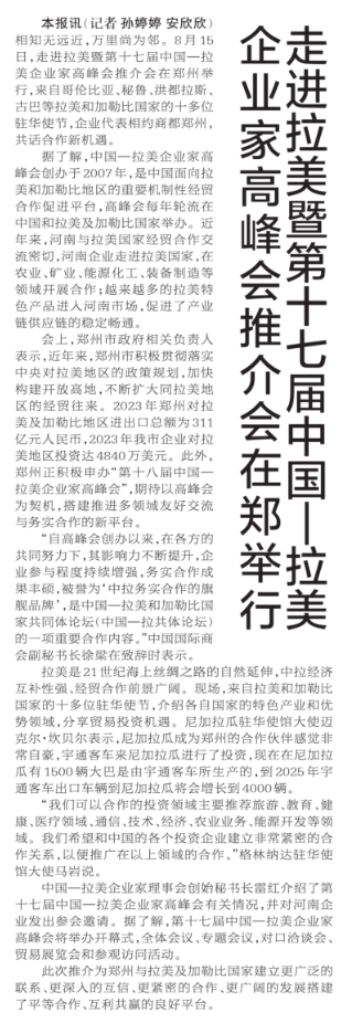 走进拉美暨第十七届中国—拉美企业家高峰会推介会在郑举行