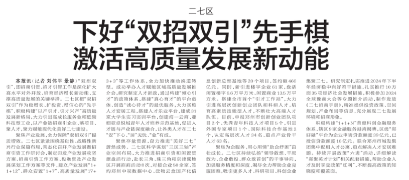 二七区 下好“双招双引”先手棋 激活高质量发展新动能