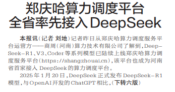 郑庆哈算力调度平台全省率先接入DeepSeek