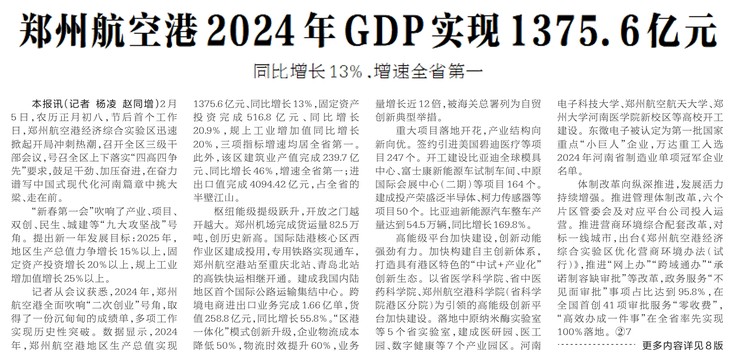 郑州航空港2024年GDP实现1375.6亿元